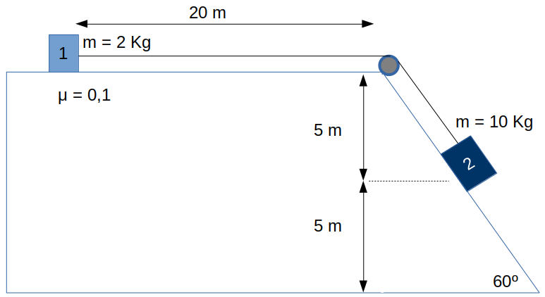 17. Calcula la velocidad con la que el cuerpo 2 choca contra el suelo.